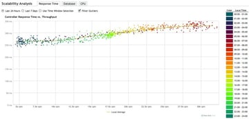 These types of trends are very difficult to spot without such rich visualization. Optimally, you want to see the response time grow fractionally with the increased requests. If you find that your application response time is growing geometrically with the increase, then it's time to optimize. Since you never know when your application is going to need to scale, it's important that you keep an eye on it's scalability as it grows. Tools like the Scalability Analysis and Capacity Analysis reports are a great way to easily make performance monitoring part of your routine.