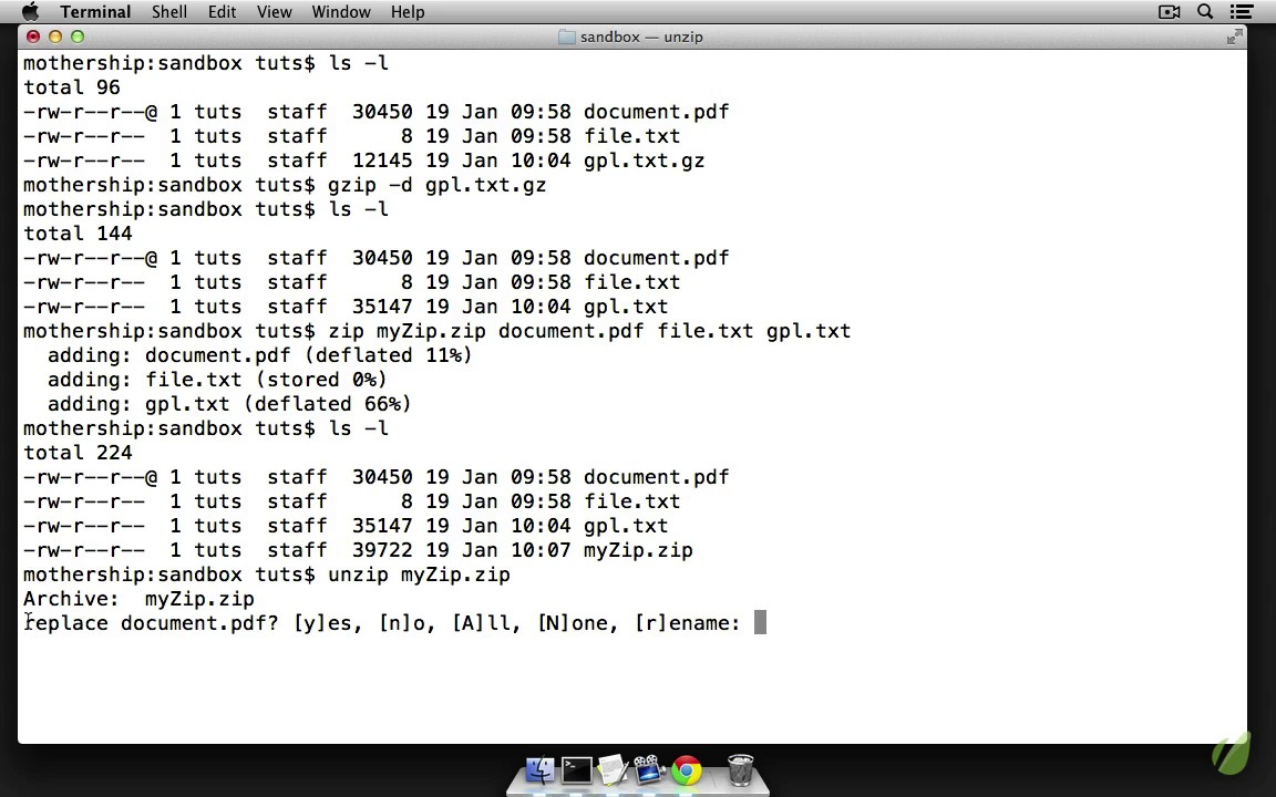 Whether it’s zip folders or tar archives, we use archived, compressed files in our daily work as developers. In this screencast, we’ll look and compressing files with gzip, as well as creating and openings zips and tars.