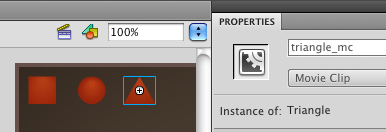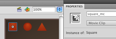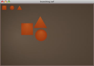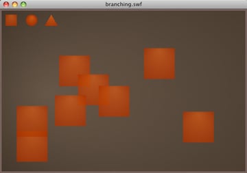 Then we move on with the rest of the code as before, with the shape variable populated with one of the three shape MovieClips.