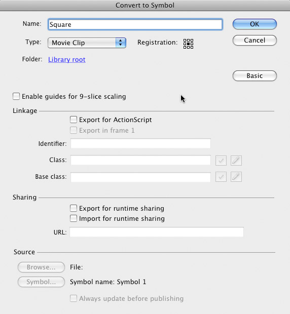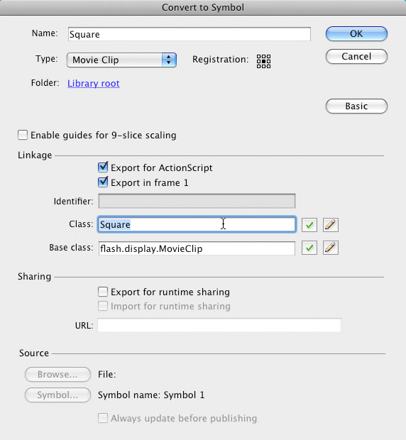 var shape:MovieClip = new Square(); |