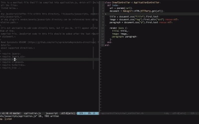 So far we have a pretty solid application. Now, I wanna improve on this and add some interactivity in order to facilitate the process of retrieving some data. I wanna script the contents of each URL and retrieve for example the title and image and the paragraph. Let's do that by first creating a controller. Let's go to our editor and create a crawl controller. So let's type that crawl under score controller dot RB. This controller class will have the sole responsibility of scraping through the website they we're trying to bookmark, and retrieve some data for us to complement the bookmark with. So let's have the index action here, which will do something that we'll implement later on, but this is going to be the interaction point between the page and the server. Now, let's go to config slash routes. Here we're going to have a you get route called something like Slash crawl slash your L and this will point out to the nth X action and the Crawl controller will call it crawl path just like so. And just remove all of this. It's not needed really and separate all of these. So we have this custom crawl route which will pick up on the URL. Let's also add in a constraint. So we use constraints and the constraints will be a hash. That tells us that the URL needs to be something like a string with any value really. This is what we want to achieve because we want to include all of the colons and forward slashes and all that stuff, and we need to let Rails out of the way. So we don't want to have anything for example with the formats and all that stuff. Rails usually picks up on the dots and the text goes after it interprets them as, for example cotton formats. So either Jason or X M L. And URLs have all those dots and foreslashes, this wouldn't work without the constraint. Now the index action will take that URL so URL equals Paramus U.R.L. so we have that variable already out of the way. Now. what do we need to do next? We know for a fact that we're going to call this route from the browser but let's focus our attention on the ruby code first. We need a way to retrieve the content based off the URL, and retrieve some sort of an image, and a paragraph, and a title. For that, I like to use HTTParty. Let's use that by going to the gem file and include the H D party gem as well as know Geary. In order to interpret the contents of that web page and sub in the panel command to add in those Okay, there you go. Now we have those two jams. Let's take the chance to restart the server so we won't have to worry about it any longer. And let's go back to where we were. In here we're going to have a document variable which will be the result of typing nokogiri HTML. We want an html document which comes from HTTParty.get url, and that's it. We will retrieve the contents of the page that's in the url, and we'll create a document out of it. Now I want three variables here. I want a title an image and a paragraph. We're going to try and retrieve all of these based solely off the document. We're going to use the CSS method to retrieve a content based off a CSS selector. I want a title here, so this should be the first one and then text. We want to retrieve the text of the first tag that comes from the list of tags retrieved by this selector method the image will be something very similar. We use document dot CS image dot first dot text the paragraph should also be something very similar, we'll just copy that. But instead of using image, we want the p, standing for paragraph. There are couple of Gotchas here. First off, I want to have the source just like that. So I want to introduce the source attribute instead of just the text, because the image doesn't have any text really. The content or the value of the image is in the source, so we'll retrieve that. Also let's consider the hypothesis that the image doesn't really exist. You're trying to bookmark a page that doesn't really have any images. What do you do? Well, I'm just going to rescue from all exceptions and turned no in case that happens. the same goes for the paragraph. If there are no paragraphs then just retrieve nil as well at the end we want to render A.J. some file that's based off the following hash. We have a title key an image key and a paragraph. There you go, that's it. In terms of the controller that's all you want. We just separate this and focus on the next step, which is the browser interaction. How are we going to introduce the AJAX interaction and all of the form integration with this crawl controller. That is when a Vue.js comes in. Vue.js is one of those libraries that you won't forget. I've been struggling a lot between choosing one framework or one library or the other. In Vue.js has really caught my attention due to its simplicity in nature If you check the guides really quick you will see that all it takes is a simple H.T.M.L.. This might be a raise template or something like that if AFU, and then just instantiate the view objects that you'll need. Specify the element based off a CSS selector usually it's best to pass in an ID selector. and then you have a data sample and also a bunch of different methods inside that view. So that's it. Of course, there's a lot more complexity in this library, but this is a great starting point and it really caught my attention. The link is in the description below so you can take a look at it. Without that out of the way, I want to focus on the new bookmark form. I'm gonna have a well just below the information here. And when we enter a new URL into the form, it's going to interact with the crawl controller. Which is then going to retrieve the information we want to populate the title, and also the image and paragraph fields which are still not there yet. Okay, one thing at a time. Let's introduce you. Let's go to the gem file and there's a gem for that in order to integrate really sensibly. Vue.js. So you use vuejs-rails, load all the changes, just hold on a little bit while it searches for it. Now that'