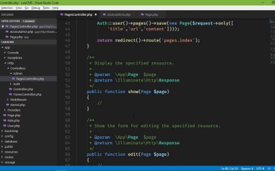 In the previous lesson, we set up the views for creating and editing our pages. Now we need to actually perform that work. So whenever we click on the Create New link, we of course are taken to the Create New form. And whenever we submit that form the store method on our pages controller is going to execute. So that's where we want to get the data from the request, and store that within our database. So the first thing we want to do is get the user that is currently logged in because if we are going to associate this page with the user, we need to get that user. So, we need to add a use statement up here and we're going to use Auth. Now of course, the user needs to be logged in, that's very important and eventually we will get there. Whenever we start implementing the security, then that's going to be okay. But for right now, just make sure that you're logged in, otherwise you're going to have some issues and here's what we're going to do. We're going to say Auth and then we're going to use the user method to get the currently logged in user. And then we are essentially going to do what we did by seeding our database. We are going to get our pages and then we're going to call the Save method and we are going to pass in the data that we want. Now here's how we are going to do that, we're going to use our request, all of the data that is coming from the user is in this request object. And we could say, okay, we'll take all of the data coming from the user and we will save that. That is very dangerous because the user could be including extra information. Because there's nothing stopping anybody from coming to the inspector adding form fields and then submitting the form, nothing gonna stop them there. So what we want to do then, is we only want the data that we are expecting that is the title, the URL and the content. So we're going to say request only, we want only the title, the URL and the content and that is going to do just that. So let's break this up so that it's a little bit easier to read. We'll put our array there on another line. And that's going to be okay for right now, until we actually tried to do it. So let's refresh the page and let's just call this my first test and we'll have the URL of test and this is my content. So whenever we submit this, we get an error. Fatal throwable error, argument 1 passed to blah, blah, blah save must be an instance of blah, blah, blah, blah. Okay we can do that, we can do page, we will pass in that data and we will try that again. Let's go back let's refresh. My first test, /test, content goes here we submit, what do we get now? Another error, mass assignment exception. So what this means is that we are taking data from the user and we are trying to essentially mass assign the properties on our page object with the data that's coming from the user. Now, this is not an issue with Laravel, it's not an issue with PHP. This is an issue with any technology framework language that has implemented something like this. Where we can take just an object, which is essentially what we have with this request and we're saying okay, just mass assign these properties. And then they get mass assigned and then here, as long as you're careful, that's not that big of a deal. But if you're not careful, then things could get assigned that you don't want to be assigned. Like sensitive things like passwords and things like that. So what Laravel does is it protects us from this by default. There are some platforms that don't, you're just stuck, you have to be sure that you do exactly what you need to do. Laravel takes a good approach in my opinion, they protect us by default, we have to opt in to say that it's okay to mass assign these particular properties, title, URL and content. We might want to limit some of that if it was highly sensitive data like passwords, or things like that. But in this case, title URL and content is fine. So what we end up doing then is, saying that it's okay to mass assign title, URL and content. And so to do that, we go to our page model, and we're going to add a protected property called fillable. And this is an array and each item in the array is going to be the name of the property or attribute that is okay to mass assign. So that is title, URL, content, there we go. So if we go back, let's refresh the page. The reason why I'm going back and refreshing is so that the token is refreshed and so everything's going to match up. So once again, my first test URL is going to be /test content, this content goes here. So now whenever we submit this, it's going to save it, but we don't see anything on the page. Well, the reason being because the code did exactly what we told it to, it saved our page, but then it didn't do anything else. It didn't return a view, it didn't redirect anywhere, it just did nothing. So what we want to do after we save it is return back to our index, so we will return, we call redirect. Now before we redirected to home, whenever we did the middleware, if we look at access admin, we just redirected to home. Well, that is an actual URL, which we could do inside of our pages controller, but we have our named routes, and they are there for a reason. So instead, we're called redirect. But we're going to call a method on this and we're going to say route and then we will specify our route name, which is pages index. And so now If we go back, let's go to our form, let's refresh and we'll say Test Again. And then our URL will be Test again, content doesn't matter and we will click Submit. And we are once again, well not once again, we are now redirected back to our index. But notice that we now have our new pages, so great. Now let's write the code for editing. Editing is going to be very similar actually, we have the data already, or at least we have our object page. So what we're going to do is we're going to fill our existing object with the data that is coming from the request. I'm just gonna copy and paste because that i