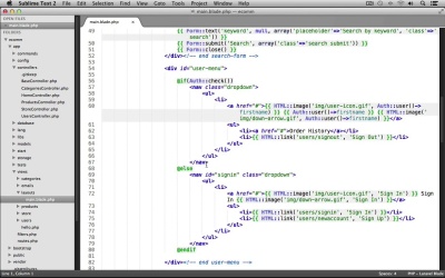 Now, that we have an authentication system and the way to identify users as an admin. It's time to protect our admin panel pages to ensure that only logged in admin users can access them. To do this we're going to create a new filter. So open up your application into your text editor. And under the App folder, let's open up Filters.php. And let's scroll down here to the guest filter, and we're just going to use this as the template for creating our admin filter. Right after it, I'll create a comment saying admin filter. And I'll just paste this in. I'll change the filter name to be admin. And now, we just need to modify the if statement's conditional. We're going to first check if the user is not logged in. We can do that by using an exclamation point, using the Auth class's user method, and that'll check if the user is not logged in. So we're checking if the user is not logged in or if the user is not an admin. To perform that check, we'll again use the Auth classes user method, and we'll grab the users admin value and we'll check if it's not equal to 1. If it's not 1, the user is not an administrator. So if either of these evaluate to true, we'll deny them access to the admin pages by just redirecting them back to the root home page of our application. So let's save our filters file. We'll close it out and now, we can use this filter in our categories and products controllers. Let's open up controllers, and we'll open the categories controller first, inside of our constructor right after the CSRF filter. Let's call the beforeFilter method again and we'll add our admin filter. And now, just by using this one line inside of our constructor, this will protect all of the actions for our categories controller. Let's save the file, just going to copy this line here. We'll close it out. Let's open up our products controller, and we'll paste it inside of it's constructor as well. And our admin panel is now protected. Let's close it out. And now, the last change I want to make is to our interface. I'd like to make it a little more user friendly for the site admins. So under views > layouts, let's open up main.blade.php. And let's scroll down to our user menu. And inside of the nav menu that we use for when the user is logged in, let's perform a check to see if the logged in user is an admin. If so, we'll display some links so that the admin can manage the stores categories and products more easily. So right after the order history link, let's use an if statement. And we'll check if the login user is an admin. We can use the Auth classes user method and we'll check if admin is equal to 1. Then we'll end the if statement. So if admin is equal to 1 that means the login user is an administrator. In that case, let's display some links to manage the categories and products. We'll create a list item tag. We'll use the HTML class and it's link method. We'll link to admin/categories, and the link text will say, manage categories. And then I'll just duplicate this line. And we'll change this over to the admin/products. And the link text will say Manage Products. Let's switch into our browser and test it out. Now, just refresh the page, and you can see that I'm not logged in as any user. So let's try accessing the admin panel pages. We can go to /adminproducts/index, and you can see it didn't take us there, it took us right back to the homepage. And let's try the categories index page. Nope. It doesn't let us access it. It acts as if the page doesn't even exist. Now, let's try logging in with a regular user, a non-admin user. So I'm going to log in using my Jane Doe user. And I'll enter in her password. And Sign In. There we go. And if we look in our user menu, you can see we don't have the admin panel manage links. And if we try accessing them. So we go to admin products. Nope. Doesn't work. Let's try again. Admin categories. All right. It's still being protected. Now lastly, let's log out. And let's log back in with our admin user. That's John Doe and his password and we'll Sign In. Now, when we look at our user menu, you can see this time we have the Managed Categories and Managed Products Links. And we should be able to view these pages. And there we go. So admins are now able to access the admin panel and any other user is not able to access those pages. So that pretty much wraps up our store's categories, products, admin panels and user authentication. Next up, we'll begin working on building our shopping cart.