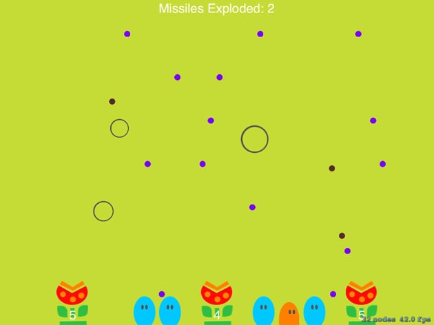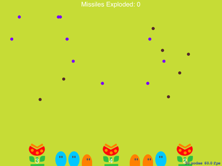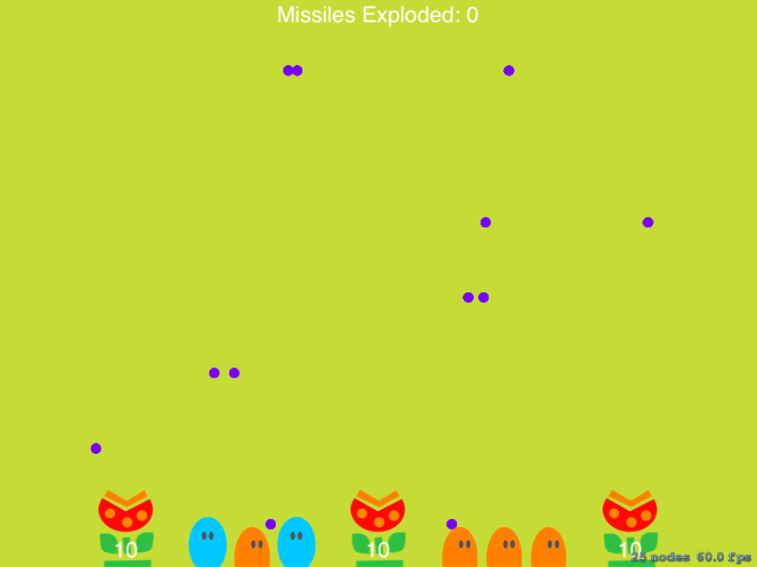If you build and run your application, the flowers should be able to shoot bullets. They don't explode yet, but we'll take care of that in the next tutorial.