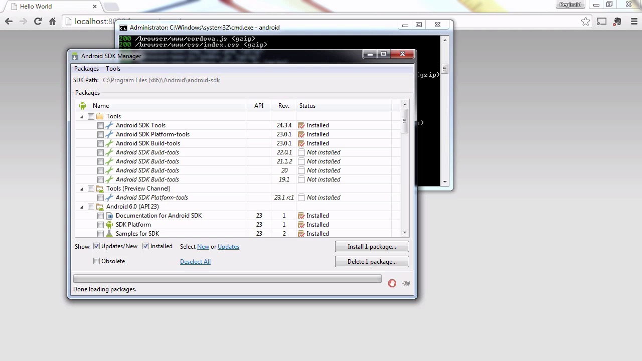 Hello everyone. This is Reggie Dawson. Welcome to the Building An App With Cordova course for Tuts+. In this video, we're going to learn how to preview and test out our apps. When developing an app, you need a way to determine how the app is going to behave on a device. Fortunately, Cordova includes multiple ways to test our app. The first way to test is with the Cordova serve command. At it's heart, every Cordova app is a webpage anyway, and as a result we can test out our app in a web browser. Open a command prompt and navigate to our sample one project. First we need to add the Android platform. Cordova platform at Android, this will add Android platform as a build target for this app. If you are working in another SDK, such as for IOS, then you would run the appropriate command for your platform. After that, we need to run. The Cordova prepare command copies our web content into the correct platform. By itself, it will copy to all platforms that have been added to a project. If we want to use a specific platform, we can add the platform name after the command. For example. After we've prepared our project, we're going to run. When we run this command, we get a message stating there is a server running at localhost:8000. If we navigate there in our web browser, we will see package metadata and a list of platforms and plugins. This isn't what we set up, what's going on? If we click on the Android platform link a pop up window will open up. We're going to click Cancel on the pop ups. And our app will start, but all we'll see is Connecting to a Device. The reason this is not working highlights the problem with Cordova serve. This app we designed, is based on Cordova APIs and as such is waiting for the device ready event. Unfortunately, since this is a web browser, Android hardware APIs are not available. And that is the problem previewing an app in the web browser. If it is a mobile platform, don't expect the plug ins to work properly in the browser. Now, if we cancel the preview and run, after running Cordova platform add browser we're gonna do a Cordova prepare and then we're going to run Cordova serve. And this time we will click on browser. When we do this, it works since this is the platform it was built for. As you can see, it tells us it is Cordova 4.0 and a Chrome device. Obviously, we need a way to test that it is closer to the actual experience we will have on our device. We also need a way to test our API's to make sure our code is working. To accomplish this, Cordova includes a decent emulator to allow you to run your app and test it. We don't have to run a prepare command for this as it prepares and builds the project before deploying to the emulator. The command we use is. This runs the default emulator for all platforms added to the project. We can also specify the platform by typing Cordova emulate Android. This will launch the Android emulator. But before we can run the emulator, we need configure an AVD to run our app. An AVD is a virtual device used by the emulator to mimic popular handsets. Type Android and press enter. This will launch the Android SDK Manager. If you don't already have it, install the Android 5.1.1 API 22 platform, as you may get an error when you try to run the emulator the first time without this Android version. After you select that, go to tools and choose Manage AVD. If we go to device definitions, we can see the various platforms available to us. We can create orclone a device here if we like, but instead we will click on Android Virtual Devices and choose create. Give the AVD a name and as far as the device, I'll just choose Nexus S. My target will be Android 6 API level 23. My CPU's going to be ARM, because I'm on an AMD processor, but if you're on Intel, choose Atom. The skin is going to be HVGA. We will set the front and back cameras to Emulated. And then we will add a SD card of 4GB. Also we have the option of snapshot or use host GPU. Snapshot persist the state of your emulator between sessions. Use host GPU offload some of the processing to your graphics card Both of these options are there to improve the speed of the emulator, especially the start up. If you have a decent video card it is worth it to check use host GPU. So that is what I will use. You can only use one or the other. After that click on OK, and close the AVD and SDK manager. Once we have done that run Cordova emulate Android. Of course I had to fast forward through the startup as it will take a long time. And that illustrates the biggest problem I have with emulator. When it finally starts, it works well, but who wants to wait five minutes to test their app? Fortunately, I have an alternative for you. There is an alternative emulator called the Ripple Emulator that works much better. In order to install, we can use npm. We run npm install -g ripple-emulator to install the emulator. After you have it installed, run ripple emulate. As opposed to the default emulator in Cordova, this emulator loads fast and works well. As you can see, it's not reporting the device correctly so it's safe to assume that not all APIs work correctly on Ripple. At any rate, we are going to test another way to be sure our app is working properly. The best way to test your app, is on the actual device that you are going to deploy to. The configuration varies by platform. For example, with Android we have to make sure that USB debugging is enabled. After that, we need to make sure the phone can connect to the PC with a USB cable, and if not, we will need to download and install drivers for our device. And once we have our device connected we can go to the command line and run. The Cordova run command executes our app on the appropriate device connected to our system. If you omitted the platform it would run to the project for each platform connected to our system provided these platforms have been added to our project. After we run the command, the app should be built and start running on your devic