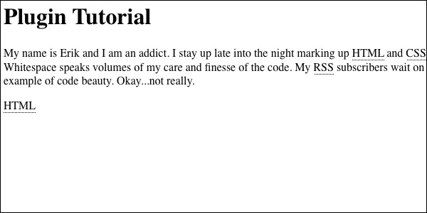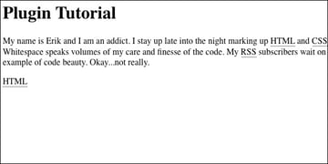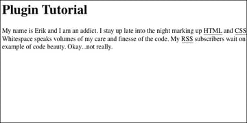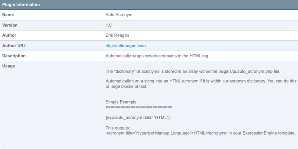 For this tutorial we are going to create a simple plugin that scans through the data passed to it and wraps certain strings with HTML tags. This is a very simple application of an EE plugin and should show you how easy it is to get started with plugin development. Our plugin will be used to search for and replace acronyms that we use as developers. For the sake of the example we will stick to three: HTML, CSS, and RSS. Let's call the plugin "Auto Acronym."
