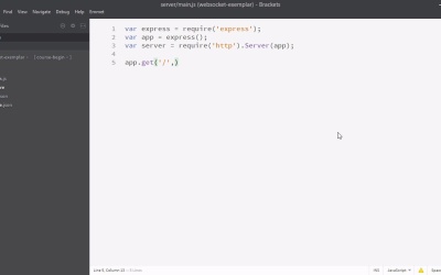 So our scaffold is set up, now we're going to set up our express file. Express is what's going to answer our HTTP request and serve our website eventually. So let's create a new folder here and I'll call that folder server So we're gonna need to express in this file and we just installed it with NPM, so we can require it using the require keyword. Now we're going to find a server variable. And we're going to make that equal to require HTTP. But our server isn't done yet. First, let's make a new variable above this and call it app. And this will be an invocation of express, so we'll pass express with brackets. And this will create a new instance of our express application. Now, what we're gonna do with server is require('http') and then we'll say, .Server, Which is going to wrap whatever we put in it in the server and we're gonna pass it app. So now server represents an instance of our express that's wrapped in HTTP. This will be important later. So now we can test our app. We can say, app.get And we'll just put in a forward slash. And the second argument will be a function with two arguments parsed in. So this method will take two arguments, rec and res. So whenever we go to our application at whatever port we listen at, it will run this code. So let's do something really simple, we'll just say, res.send("Hello world."). And we'll also put a console log here. And say, something connected to express. Finally, we have to describe a port for our app to listen to. So we'll say, server.listen not app.listen, but server.listen. And will pass it a port, it can really be any port, but let's make it 80, one of my preferred ports to use. So let's give our app a test drive. Let's open up our terminal. And here I am in the main directory, so I'm going to have to type node server/main.js. And that's looking good. Now, I'll bring up my browser and let's navigate to local host. Since the port is 80, we don't need a port. 80 is the default no port port. So we can see our express is working. We see hello world and we see something's connected to express. Why do we have two statements? Well, the nature of our Socket.IO is that we're going to be doing a lot of communication between the server and the browser. So now, we know both sides are working.