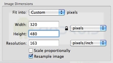 - iPhone/iPod Touch: 320x480px, 163 ppi