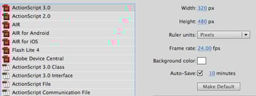 Open Flash and create a 320 pixels wide, 480 pixels tall document. Set the Frame rate to 24fps.