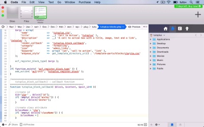 Hello, and welcome back to this Tuts+ course on creating Gutenberg blocks in WordPress without JavaScript. In this part of the course, we're going to create our callback function that will actually output the block on a post or a page. And we'll start by setting up a function for it and pulling in our fields. Now, before I do that, I'm going to edit these because I don't like this Book CTA. I'd rather call it CTA Title. So I'm gonna edit that, because that's what it is. It doesn't have to be a CCA for buying a book, it could be for anything. And I'll be using these names when I pull them into my callback function, because this is how WordPress and how the Advanced Custom Fields plugin will identify them. So I'm gonna make a note of all those names so that when I'm writing that function, I've got them to refer to. I'm gonna edit the background and call it CTA Background Color. And then I'm gonna update that field group to save those changes. So I'll use all those names in my code. So now let's go back to our plugin file and create our callback function. So let's copy this and paste it down here and edit it. So my callback function is called tutsplus_block_callback. And then I'll change the description here. And I like to use comments like this throughout my plugins, so I can see exactly what's going on. And if I ever need to come back to the code in future, I don't have to spend ages going through it. So I'll start by creating my function. I don't need to hook it to anything because it's a callback function. And I need to add some parameters to it. The first one being block, content, and post_id. So now let's add some content to this function. The first thing we need to do is create a unique ID for this specific instance of the block. And we do that using the CTA or using the IDs that we've already created for the field group. And it'll use variables that are provided by the Gutenberg interface and the Gutenberg API. So it has a unique ID, this particular instance of the block, because that means we can then use that later on to style it. Because we just want to style this instance of the block, not every time this block appears on our site. So the ID is cta- and then the ID of the actual block. An anchor is part of the array of variables stored against the block by Gutenberg. If that's empty, we will create an ID, Which we've already defined using this ID variable. We then need to create a class attribute for it. And this is all using aspects of the Gutenberg API to create our block correctly. So this creates the ID and the class attribute, pulling in values from an array of variables stored against the block. And if you want to find out more about that, you can see it in the documentation for Advanced Custom Fields here. So now let's load the values that have been set using those fields in the field group. Now what I used here was not cat_title, it was cta_title. So I need to make sure I'm using exactly the same IDs for my fields as I used when setting up my groups. So these names that I used here. So I'm gonna copy these and paste them and edit them as I go along. So I need to make sure I'm editing the right one. And they are placeholder values that will be overwritten by the user. And for my link, I'll just put a hash as the default. Making sure I'm using cta and not cat. Now you don't have to include a default. I could have taken all these defaults out if I wanted to. And I'm not gonna include a default for the image. So those are the values and the defaults. So the next stage is to write the HTML that will actually output the block. And that's what we'll do in the next part of the course. See you next time, and thanks for watching.