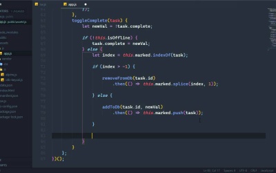 In the past couple of lessons, we've been setting our application up to use background sync, so that in this lesson we actually get to sync. And it's very easy. We just trigger the sync and then we sync, so it's straightforward. Now the first thing that we need to do is, pull in the idb-keyval file into our service worker. Now yes, we have listed it here as far as our cache, but that's our cache. We wants to actually use this inside of this file. So what we need to do is is call a method called importScripts. And then we specify the scripts that we want. It accepts an array of strings, and these are paths relative to the service worker. So it's basically the paths that we defined for our static resources. So here we just want to pull in that idb-keyval so that we can use that directly here, instead of a service worker so the we can interact with our index db. And with that we can scroll all the way down to the bottom. And let's get rid of this comment inside of the fetch event listener because we don't need that anymore. And we are going to add another event listener, and we will listen for the sync event. So that's basically it. We listen for this event, and when it occurs, then we do whatever work that we need to do. And we can issue any kind of sync events, because we're given this tag property. And this is what allows us to determine what type of sync is occurring. So in this particular case, we just want to sync our reports. So let's just call this sync-reports or report, rather. And of course, we need an if statement here. So if the tag is equal to our sync report, then, well we want to sync the report. And from here on out, it's just like any other event listener, to where we want to wait until we execute a function that we'll just call sync report. There we go. So let's write this function. Let's scroll up a little bit. This is going to be after the get response for function. So this is going to be asynchronous. And the first thing that we are going to do is get whatever we have in the database. So let's just call this object changed. And we will await Idb-keyval. We will call, the get method, in order to get, the changed value. Now it's entirely possible that, we don't have a value to work with. So the first thing we need to do is make sure that there is something in changed. But remember that changed is an array. And if there is nothing inside of that array, there's nothing to do. So as long as we have a value for changed, and it has a length greater than zero, then of course, we want to push all of that to the server. And of course, we don't have anything on the server to actually process this stuff. So we're just gonna write a message to the console, send report to server. In a real application, we would use fetch and issue a put request with that information, and then we would be good to go. But for our purposes, this is going to be fine. We can at least see that this code is working. So now all we need to do is trigger this sync event, and we do that inside of our app js. So, in the section where are offline, what we are going to do after we have added or removed things from our marked array, we are going to trigger that sync event. Except that in this particular case it's not really triggering it, it's going to queue it up, so that if we are offline, then it will queue up the event, so that when we are online, then that event will fire and our code in our service worker will execute. But we need to do some progressive enhancement, because not every browser supports background sync. So we're going to make sure, that SyncManager is in window, and most Chromium browser have this object. So that then, we will use the navigator object, we want the serviceworker and we want to do this when it's ready. Then we will use this registration object, to sync and register, the sync-report, event is not really any event but we are registering that tag. And there we go. That's going to, kick off the sync event which will get queued up if we are offline. And then it will actually fire when we are online. So all we have to do is just go to the browser and test. So let's go offline. Let's clear out the storage, let's do a hard refresh, and then let's go offline. And whenever we click on any one of these, we get an error. And I knew we would because, well, I've been testing with this. And I don't know why we are getting this Permission denied error. It appears to only happen in Brave, and I've tested it on multiple machines. So it's not just this machine, and it's not any settings that I have changed because I have done fresh installs of Brave on machines that didn't have Brave. So, I don't know. I've made inquiries, but we'll just have to wait and see what's going on there. So instead, what we can do is either fire up Google Chrome, or the Chromium version of Edge, or some other Chromium browser. Apparently, Opera doesn't according the MDM, but Opera might work. But we just need to go to local host 3000, let's pull up the developer tools, and we will go to the application which is already here. Although let's do this, let's clear out everything, let's do a hard refresh. And now if we go offline, let's clear out the console there. So if we click on any one of these things, notice we don't get an error, so it is something in Brave, I don't know what. And of course if we look at indexdb, we are going to see that we are indeed, storing data here. So we are offline, and just by clicking one of these things, I should have issued that backgrounds sync event, so that whenever we go online, we should see something in the console that says that it is sending the report. And there we go. Now of course, something else that we should have done inside of the service worker is actually clear out the data that we had inside of our index db, because of we're sending this stuff to the browser, then all of that stuff is updated, and we want to clear out idbKeyval set, and that's changed to an empty array, but 