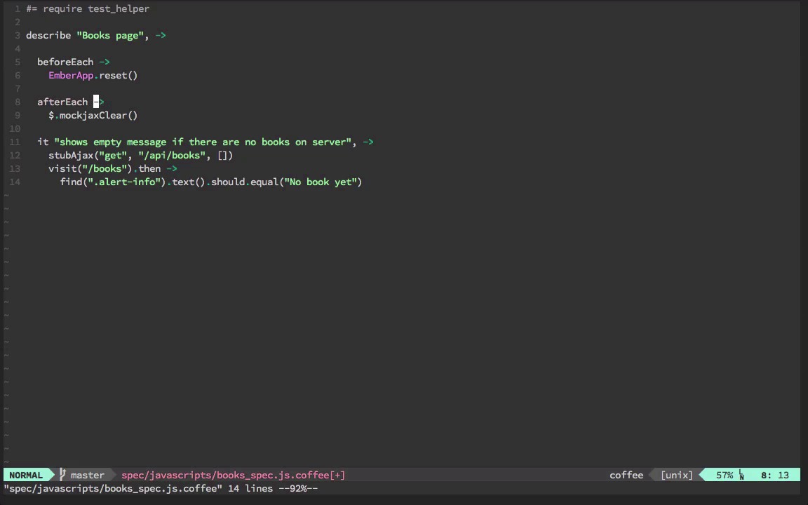 In this lesson we’ll start implementing the “add book to the list and display all books” feature. We’ll drive this code with Ember integration tests. This feature needs to communicate with the server, so we’ll fake server requests and responses with the help of yet another cool library: Mockjax.