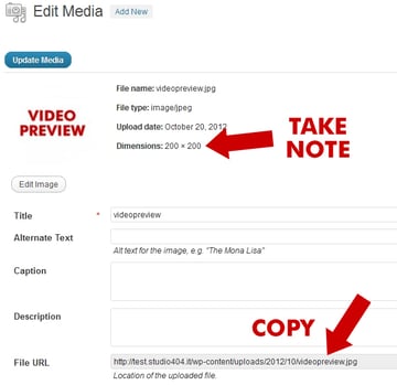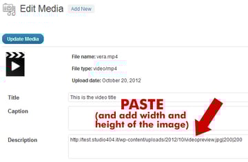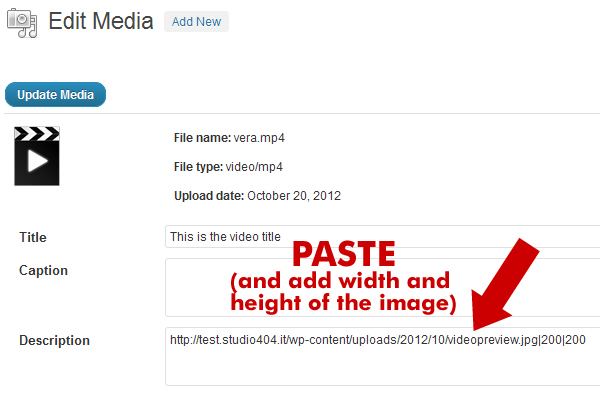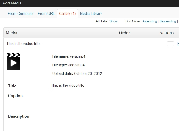 Después de subir el archivo, añade otra información: título, leyenda o pié de foto y usa el campo Descripción para especificar la duración.