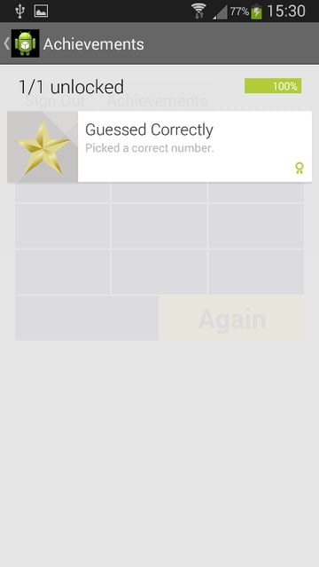 El usuario puede elegir cerrar la sesión y volver a ingresar cuando lo desee. Cuando el usuario selecciona un número correcto, el logro se desbloquea y se muestra en la parte superior de la pantalla del juego.