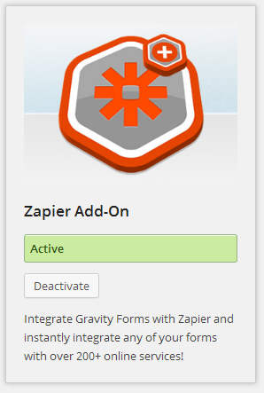 You will now need to make sure the Zapier add-on is activated with your Gravity Forms installation. As I mentioned earlier, you will need the Developer version of Gravity Forms. Find it under Forms > Add-Ons and click the Install button to easily activate it.