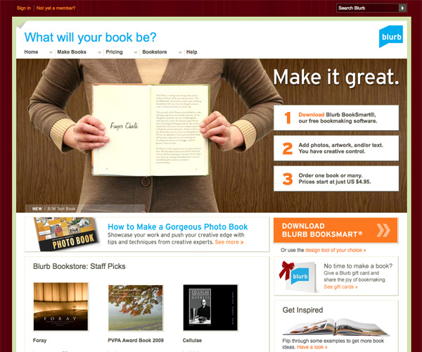 Blurb is another self-publishing service that puts more emphasis on style than many other self-publishing sites. They offer good user experience for both authors and book buyers, and showcase "staff picks" on the home page (something many self-publishing companies don't bother with).