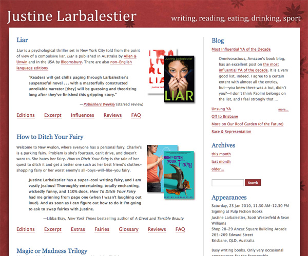 And in reality, there are a lot of things an author's site needs to accomplish. It needs to provide readers and potential readers with information about the books and why they might be interested in reading them. It needs to give booksellers information about the books, and why they should stock them. And it needs to act as a constant promotional tool that will help the author sell more books and gain more fans.