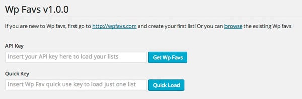 Once installed you need to go to Tools > Wp Favs and you will see something like: