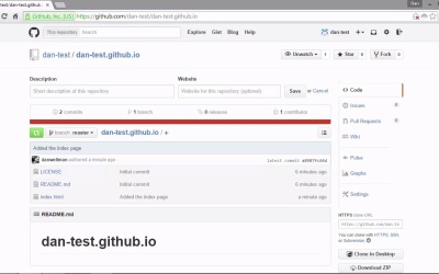 Hi folks. In this lesson, we're gonna look at how we can create Github pages. There are two types of Github pages. We can have a page for ourselves, like if we're a company, producing open source software. We can have a static site that talks about our products and the company etc. And we can also create a static site for our repositories. If the repository is a library or framework, this could be for the documentation, the contributors, and that kinda thing. So let's see how we can create these different types of pages, starting with the user or organization page. All we need to do is set up a new repository which has a specific name and the name should a username followed by .github.io. So let's go back to GitHub and do this now, we'll do it through the GitHub website. [BLANK_AUDIO] So remember the repository has to have a very specific name and that is our username followed by .github.io and we can leave a description if we want. And this time we will initialize the repository with a readme and we can also add a license, let's just. Let's just go with. [BLANK_AUDIO] Let's just go with MIT. So we'll create the repository now and what we need to do now is just clone this repository to our computer using the clone command. So this si the equivalent of using git init in that we end up with a copy of the repository and a working directory on our local machine. We're just not initializing it ourselves directly because Github has already done that. So we want to cd up out of our main project repository to do this and now let's run the clone command. [BLANK_AUDIO] So we should get some feedback to say that it is cloning into a repository and it tells us how many objects there are in the remote. And it brings the files down for us it compresses them. And it unpacks them and it should complete successfully and as you can see in this case it has done. So if I go to my desktop now, I find that I've got a new repository there and there should be a copy of the repository that is up on gethub. So let's go into the folder now and we can see that it has the license that we added. It has the heading.git folder and it also has the readme markdown file that GitHub added for us. Great, so now we can just add an index.html file here. Just go back to the command line and do that in VIM. [BLANK_AUDIO] Okay, so let's just save and close VIM now. So I just want to point out that if we add an HTML file that has unclosed tags in it or tags that don't match or there's some kind of other syntax error. Or formatting error then Git won't create this static website for us. It has to be valid HTML and it doesn't have to just be an index page we could add an entire static site if we wanted to. In this case, I'm just adding a simple index.html page and there's one other point to note as well. And that is that your email, your email address must have been verified. So when we create our account and add the email address, GitHub will automatically send a verification email. So I've just gone into my email account now and clicked on the link and verification email and just verified my email address. So you'll need to make sure that you've done the same thing before trying to do the example in this lesson. But once that's done we can create the static site very easily. So we've created the index page now, so let's just add and commit this. [BLANK_AUDIO] And now we can push that back up to GitHub. [BLANK_AUDIO] So just to remind you, when we use the push command we can add the -u flag to tell Git that we want to track this remote branch. And then we specify the name of the remote which in this case is origin and the name of the remote branch which in this case is master. And because I didn't set up my SSH stuff properly because I've already got some SSH stuff set up for a different account. It's gonna now ask me for my username and password and I am gonna have to do this every time I want to push code to this repository which gets very annoying very quickly. So you shouldn't have to do this step because you should have already verified the authenticity of your computer using your SSH keys which we did in the last lesson. But for me I just need to enter my username and the password. [BLANK_AUDIO] Okay, so once the push has happened we can go back to GitHub now and just verify that and let's just refresh the page. And we can see that's an index.html file was added one minute ago. So it takes a little while for GitHub to build our site as this is just a single HTML file, it should build pretty quickly but we'll need to give it a few minutes. When we want to visit our static website, so this is our user site, remember or it could be an organization site. But in this case I'm just a regular user I'm not an organization. And so the site that I've created is a user site as opposed to an organization site. But when we want to actually visit that site the URL that we want to go to is the same as the URL for the repository. So let's just take a look and see if git has built that yet. [BLANK_AUDIO] As you can see, it has. It only takes a minute or so and we can see the heading that I added, Dan's test and this a brilliant way that we can host a simple static website. We don't have to set up any hosting, we don't have to have a hosting provider. We don't need to do any tricky FTP stuff, we can do it all through Git and GitHub and that's a brilliant thing. So creating a project site is just as easy. So this time we need to create a new branch in the repository that the repository site is for. So let's just go back to our main page and let's now get back into our project repository. And we want to create a new branch, so we can do that with this branch button just above the list of files here. And we're gonna create a new branch and this branch must have a very specific name again. So very much like the repository that we created for our static site had to have our username flow by .github.io. When we create this branch for our project si