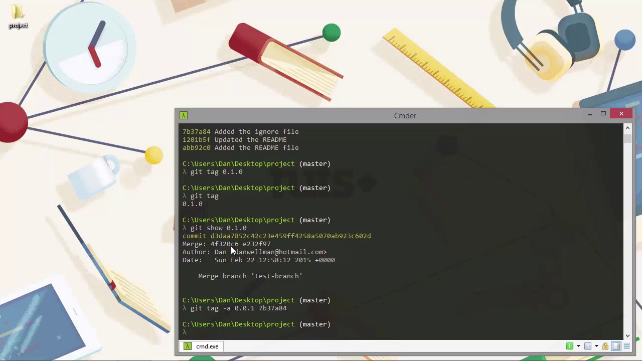 Hi folks. In this lesson, we're gonna take a quick look at tags in Git. Tags in Git are a simple way to mark a particular point in a project's history as special in some way and many people use them for marking releases. In some ways, tags are a little bit like branches in that they can both point to a specific commit. Branches however, can be changed and we'll point to different commits as changes are made. Once a tag is set, it will always point to a specific place in the project's history and will never change. There are two different types of tag. Light-weight or simple tags and annotated tags. And we'll look at both. So first of all, if we run the tag command without specifying any flags, it will show all the tags our projects currently has. In our case we haven't added any tags yet, so we don't see anything. A lightweight tag is just a descriptive label that points to a specific commit. In the last lesson we merged a new feature into a master branch which we can see if we run git log. So now let's say we want to release this as version 0.1.0 we can add a lightweight tag that marks this exact moment in the project's history. So we don't get any output from that, but if we run the tag command without any flags or arguments again then we should see our new tag listed. And indeed we do. And the tag just has the label 0.1.0. And that's the label that we supplied after the tag command. Okay, great. And if we want to see exactly which commit this tag points to, we can use the show command in conjunction with the tag that we just created. [BLANK_AUDIO] And that gives us the full commit hash. It tells us that it is was a merge commit and it shows the shortened hashes of the parent commits. It also shows the author and the dates and it shows the commit message. Which as you can see is one of Gits default merge commit messages. An annotated tag can store a little bit more information than the information associated from the commit that the tag points to. So earlier in the project's history we had a commit for the ignore file and previous commits saw the read me file added. So let's say that this commit, the one where we added the ignore, should have marked the 0.0.1 release in early alpha. We forgot to tag it at the time, but that's fine. We can still retroactively add a tag that points to the project as it was at that time. So let's copy the short hash from the log that we generated earlier. And now let's parse that after the tag. So doing that by itself doesn't make the tag annotated. In order to make the tag annotated, we have to supply the -a flag. [BLANK_AUDIO] We need to write a tag message so Git has automatically opened up vim, and let's just add a message to say that this was an early alpha. [BLANK_AUDIO] And once again we don't see any output from that command, but let's just show that tag now using the show command. And I'm just gonna clear my screen first of all. And this time we can see there's a lot more information here. So let's just scroll back up, and we can see that the name of the tag. Is shown in 0. It's tagged 0.0.1 and we can see the name of the person who made the tag and when that tag was added and we can see the message that we gave to that tag. And it just says Early Alpha Release. And then it points to the commit; we see the full commit hash. We can see the author and the date and the message from that commit. And it even shows us a div of the state of our project at the time that, that commit was made. So now that we have this tag we can check out the commit that the tag points to if we want to. So it gives us quite a bit of output this time, it says that we are now in a detached head state. Now it sounds really painful but actually it just means that our head, which should be pointing to the latest commits, is actually pointing to a different commit. And let's just open up the project folder. And we can see that all of the files that we added after this point in the history of the repository have been removed. But don't worry, they haven't been lost. Get still knows exactly where they are and it's just that we've checked out an earlier version of our project. And remember that I said earlier in the course that it's actually very difficult to lose anything in git because if you remember, almost everything is stored using hash. And we can use this hash to retrieve any piece of content in the project. So as well as checking out annotated tags we can also checkout lightweight tags. [BLANK_AUDIO] And our head is still detached, but if we go back to the folder now, we can see that all of the files have been brought back by Git. So I said that they weren't lost. They aren't lost. Git knows exactly where they are. And when we check out a later version of our project, Git brings everything back for us. So to re-attach our head, we just need to check out master again. [BLANK_AUDIO] And now we're back on the master branch, our head is no longer detached, and everything is back to how it was. Although we can create both types of tag, lightweight or annotated, with equal ease, it's recommended that we always create annotated tags because these include information about who made the tag and when tag was added. And that's obviously useful information. One important point to note is that when we push our local repository to a remote repository, any tags that we've added are not pushed by default, so we have to specifically push them. In this lesson we saw how to create tags in Git which can give a friendly label like a version number to a specific commit in order to mark a particular point in the project's history as important. Or special in some way. We saw that we can create either light-weight tags or annotated tags and we looked at the differences between them. We also saw that we can check out our projects using tags but when we do that, our HEAD becomes detached. When we've got a detached HEAD, we should never make any changes to our repository. Thanks for watching.