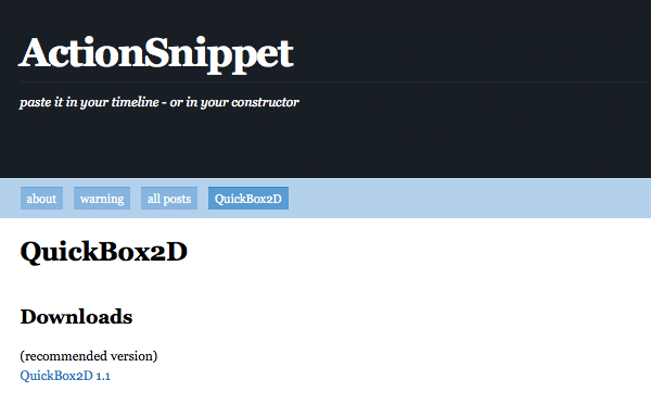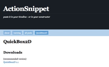 Next you need to download the latest version of QuickBox2D from actionsnippet.com.