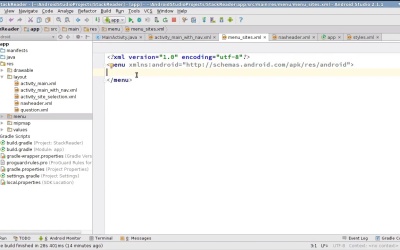 Hello and welcome back to this course about migrating an app to Material Design. In this lesson, we'll be creating a navigation drawer that can be opened using a swipe gesture. Instead of using the traditional ListView, we'll be using a navigation view inside our drawer. The navigation view conforms to the material design spec and is a part of the design support library. We'll be adding the navigation drawer to the main activity. Now instead of adding it directly inside the current layout of main activity, let us create new layout. Call it activity_main_with_nav. The root element of this layout will be DrawerLayout. Here, give an id to the DrawerLayout, you can simply call it drawer. Inside the DrawLayout, we can embed the original layout of main activity using the include tag. We can now add a NavigationView widget to the layout, it's width must be wrap_content and height must be match_parent. Next, use the layout_gravity attribute to specify that the navigation view must open from the left corner of the screen for English users. Give it a white background Next, set the value of it's id to nav. We must now create a header for this navigation view, so create a new layout resource file, call it navheader Drag and drop a medium text view to the layout. And set its text attribute to Stack Exchange sites. According to the Material Design spec, the text view must have a left margin of 16dp Its gravity must be center_vertical. And most importantly, the height of this view must match the action bar's size. I'll also change the textColor to black. Below this text view, we must add a divider. You can use view widget for this. It's width can be match_parent, but its height must be 1dp. Set its background color to black. According to the Material Design spec, the alpha of this divider must be 0.12. Finally, we need to give a paddingTop of 24dp to the LinearLayout. 24dp is, as you might have guessed, the height of the status bar. If you forget to set this padding, the navigation header will be partially obscured by the status bar. Get back to the activity_main_with_nav file now. Here, you can set the value of the headerLayout attribute to @layout/navheader. Next, we must specify the contents of this navigation view. In order to do that, we must create a new menu file. So create a new menu resource file and call it menu_sites. Inside the menu, create a group and set the value of its checkable behavior attribute to single, this way, only one item in this group can be selected at any given time. Inside this group, we must add all the items that are present in this screen. These items, as you already know, are defined inside the string.xml file. So, let's copy all of this and paste it inside the menu file. This syntax is not valid for a menu. This text here, must actually be used as an android:title attribute. In addition to the title, let's add an icon to each menu item. We can use the ic_forum drawable here. Now, repeat these steps for all items. So, it's just a few copy and paste operations. Our menu file is now ready. Go back to activity_main_with_nav and set the value of the menu attribute of the navigation view to menu_sites. For this navigation drawer to show up correctly above the status bar, we must add a fitsSystemWindows attribute to it and set its value to true. To be able to use this layout in main activity, change the layout you pass to the setContentView method to activity_main_with_nav. Let's run the app to see what we have got. Nothing has changed here at first glance. But if you swipe from the left corner of the screen, you will be able to pull the navigation drawer out. According to the Material Design spec, the navigation view must be partially visible through the status bar. In other words, the status bar must be made a little transparent. To do that open styles.xml. Here, add a new item called windowDrawsSystemBarBackgrounds and set its value to true. Next, add another item called statusBarColor, And set its value to the built in transparent color. Now there's an error here because these new styles are available only in API levels higher than 21. To fix this, select Override Resource in values v21. And our studio now creates a copy of the styles.xml file, that is applicable only to API levels 21 or higher. You can now go back to the default styles.xml file and remove the two new items from it. If you run the app, you will see that the navigation view fully conforms to the Material Design spec now. In this lesson, you learned how to create a navigation view that can be opened using a simple swipe gesture. In the next lesson, we'll create a button that can open the navigation view. Thanks for watching.