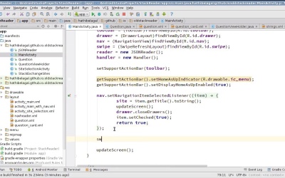 Hello and welcome back. In this lesson, I'll show you how to create a swipe gesture that can refresh the contents of the recycler view. The swipe to refresh gesture is very popular and most Android users know how to use it. Nevertheless, for the sake of accessibility, we will also keep this refresh menu button. Let's start by going to the layout file of the main activity and switching to the text mode. Above the RecyclerView add a SwipeRefreshLayout widget. Set its width and height to match_parent. Next, cut the RecyclerView tag and paste it inside to SwipeRefreshLayout tag. You must now move all the layout related attributes of the RecyclerView to the sSipeRefreshLayout, so that the position of the RecyclerView is not affected. So, we have two attributes here. Finally, give an ID to the SwipeRefreshLayout. Call it swipe. Go to the main activity class now and add the SwipeRefreshLayout as a member variable. And as always, initialize it inside the onCreate method using findViewByID Next, towards the end of the onCreate method add a new onRefreshListener to the SwipeRefreshLayout using the setOnRefreshlistener method. Inside the onRefresh method, all you need to do is call, updateScreen. The SwipeRefreshLayout allows you to display a loading indicator while the refresh is in progress. However, you have to turn the indicator on and off manually yourself. So, inside the updateScreen method, lets turn the indicator on by calling the setRefreshing method. And passing true to it. And then at the end of the renderList method Turn the indicator off by passing false to the setRefreshing method. Our SwipeRefreshLayout is ready. If you run the app you will not see any difference right away. But if you swipe from the top of the screen, you will see this refreshing indicator. You must pull it about halfway down the screen and then release it. Once you do so, the refresh starts. And after the refresh is complete, the indicator disappears. You will now see the loading indicator even when you use the navigation view to switch to a different StackExchange site. You now know how to implement the swipe to refresh gesture. Thanks for watching.