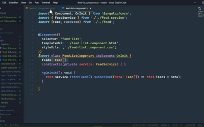 Now that we have a list of feeds, we want to display that in the browser. And of course, since it is a list of feeds, well, we are going to be using ng4 because that's how we display a list of things. And we can actually use NgFor in a couple of different ways and we will look at both of those in this lesson. So let's start with the easy way, we have our feeds array which is a property and all we need to do is just iterate over that. Now, we do need to take out private because this cannot be private in order to access it from our markup. But we're going to do this we will have a div element and we're going to use the mat sub header attribute here. That's going to apply the mat sub header class to that, so this is going to be the sub header for this panel. So it's just going to be called feeds and then we are going to use the mat selection list. This is a lot like the HTML select element, because we supply options to it and of course those options have text, they also have values. So if we have option one, and let's go ahead and have an option two, so that we can see what that renders in the browser. We are going to have two options however, there is going to be a check box for these and that was very wrong. And that's because its option that's one of the hard things about typing and talking at the same time. So, there we go, we have two options but they can both be selected because by default, this selection list allows you to select multiple items. That's not going to help us in our case, so what we will do is set the multiple property to false. And that will change the behavior so that we can only select one item at a time. And this is really nice because it tracks the active option, so whenever we click on one, it remains highlighted. And that functionality is built in so we don't have to write that and I love that, so with that in place, let's go ahead and let's iterate over our list of feeds. So we will use the NgFor and our expression will be let feed of feeds. And let's go ahead and set the value property to the feed that we're going to be working with and then we will have the text as the feeds name. So whenever we view this in the browser, this should change and we have our feeds, so there we go, we have that working. Now, a lot of times we would want to supply subcomponents with an ID so that we can access them and do things with them. Like, for example for our mat selection list, we might want to give this an ID of feeds. And we can do that, there's nothing wrong with that except that we broke it, it doesn't work anymore. And if we look at the console, we're going to see an error that basically says that NgFor only supports binding to iterables such as arrays. Now, at first glance of course it does we supplied an array I mean, we were very explicit about that not just by defining fetch feeds but also our feeds property. But that is not working, obviously and we can try to check this like for example, if we wanted to see what feeds was. We could pipe that to Json so that we could see the Json in the browser, and of course it's going to be an array. Well, here's the thing all of this stuff is part of the same component, we have a property called feeds. And we just defined an ID of feeds which automatically makes this selection list component available to us programmatically. So inside of this selection list component feeds is this component itself, it's not the array that we want to work with. So of course the fix is rather easy, we can give this a different name like feeds list. And if we did that, then everything would work again, but I don't wanna do that. I want to use feeds as the ID for the selection list, so then that means that we need to change the name of our property. So, we can do feed the list like that as well or we could do this, we could change how we are going to use NgFor in that instead of using just an array. We could use an observable, so that feeds would then be of course renamed to feeds followed by a dollar sign. Which indicates, by convention that this is an observable, we of course need to change the type to an observable of a feed array. And then we could do something like this, so that's inside of our Init whenever we call fetch feeds we don't subscribe here. We just call fetch feeds and we actually assign that to our new feeds property. Now remember, feeds has a dollar sign at the end, we do need to import observable and that is from the rxjs. So here's what we're doing, we are not going ahead and actually executing that request. We are storing the observable in a property and inside of our markup we need to change this. Not only do we need to add a dollar sign at the end of feeds because that's not going to work. If we look at the browser nothing works, if we look at the console, we're going to see that same error. NgFor only supports binding to iterables such as arrays, which makes sense because right now feeds is an observable. It is not an array, but we can use in NgFor with an observable by using the async pipe. So instead of actually making the request and processing that information inside of our TypeScript code, we are doing that here inside of our HTML. Which this is actually how I prefer it because it simplifies our TypeScript. And we don't have to manually call the subscribe method on our observable that's automatically done for us with the async pipe. So when it comes to displaying a list of things coming from an asynchronous resource. You have a couple of different options, you can go ahead and subscribe to that observable inside of your TypeScript code. Or you can use the async pipe in your markup. Either way, you get the same results, but I tend to think of the async pipe being a cleaner approach.