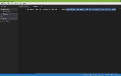 The API for writing a file is going to look very similar to reading a file. And that should be a good thing, because there are some API's out there where reading and writing are completely different from one another and that is just a pain. But thankfully, the developers behind Node wrote an API that is very straightforward, and it's very similar to what we saw in the previous lesson. So as I mentioned in the previous lesson, I said that we were going to write to our config file. And the more I thought about that, the more I decided not to, because applications typically don't write to a config file. But they do write to a log file, so that's what we are going to do. Any time our application starts up, we are going to write that to the log. So let's create our application file, I'm just going to call it write-file .js. Let's opt in to strict mode, and then let's pull in the fs module. And from here, we have a couple of different options. The first is to use the write file. So just as we had the read file in the previous lesson, we have write file. The first argument that we pass is the name of the file that we want to write to. I'm just gonna call it log.txt. The second argument is the data that we want to display. So let's say application started, and then we will have a timestamp. So let's pull in a new data object. We're not really pulling in, we are creating that object. And then we will output the ISO string, that will be good. And then we need our callback, this is an asynchronous method, we need a callback. Now, we don't technically need a callback. We could leave this as is, we could run our application. And we would see that it will run but we're going to get a warning that calling an asynchronous function without a callback is deprecated. So we need a callback, especially since this is how we would handle an error. So let's have our callback. And in case if an error occurs, then we want to do something. [LAUGH] We can't write to the log file, because there was an error writing to the log file, but we can at least throw the error, in this case. So once again, let's run this application, that warning goes away, and we don't have any exceptions. Now notice that we did not create that log.txt file, or at least, we didn't create it manually. But whenever we wrote to that file, notice all that the file did not exist, and so it created it before we wrote to it. So that is the default behavior. Now, we can modify that behavior with supplying some options. But the default behavior, and I rather like that behavior, if it doesn't exist it creates it. Now, notice though, that we ran this application multiple times. We ran it the first time where we got the warning, but it still created that file. And then we ran it again. So ideally we would see two entries here, because a log file is there for listing the log of whatever it is that we want to log. So ideally we would have two entries here. So by default, whenever you call the write file method, or really whenever you write to a file, the default is to overwrite the existing file. So the behavior is if the file doesn't exist, it creates it, if it does exist, it overwrites it. So in this case, we want to append to that file. So we need to pass in an object that contains the options that we want. And in this case we want to append to the file. So after the data that we write to the file, we want to pass in an option that has a property called flag. And the flag that we are going to specify is just a lowercase A. This means that we want this file open so that we can append to it. So let's put this on multiple lines, so that it's a little bit easier to read hopefully, and let's also format this. That's a little bit better. So we have our code for writing to our log file, and it is going to append in this case. So let's run it again, let's look at the log file. But notice that yes, it did append to it, but it just added the new data at the end of the line. So nothing that we pass to the write file method is going to be formatted, we have to format it ourselves. So it kind of makes sense then to just add a new line after the data that we write to. So let's go ahead go ahead and clear that file. In fact, let's go ahead and delete it, so that it will create a new one. Even if we specify that we want to append to that file, it is going to create it, if it doesn't exist. So let's run it a few times, and let's go back and look at that file. We can see that it is created, and then we can see that we have multiple entries here. The first way that we can write to a file is with the write file method on the file system object. The second way is to create a write stream. Just like in the previous lesson we created a read stream, we are going to create a write stream. So I'm just going to call this variable stream. Because really what we want to do is create this stream and store it in a variable, so that we can use it multiple times. Because this is going to give us a method called write. And any time that we call the write method, it is going to write to our file. So the idea here is the same thing. We pass in the name of the file that we want to write to. And then, instead of passing the data, because all we are doing right now is creating a write stream, we pass in whatever flags that we want. So in this case, we want to, once again, create a file, so that we can append to it. So our flag is going to be a. And that's all that we need to do for creating a write stream. Then we can use our stream variable and we can write the data. And in this case, we will do the same thing. So let's just write to our file that the application started, and then we will specify our current time. Now, one thing we should do now that we've created a write stream, we should close that stream whenever we are done with it. So we can say stream.close, and that will close that stream, so that we are releasing that resource. That's always a good thing to do. So let's go to the c