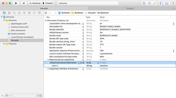 canOpenURL(_:)fails if the URL isn't added to a whitelist in the application's Info.plist. - Applications not built against the iOS 9 SDK continue to work as expected. There is one limitation, though. An application can only query 50 distinct URL schemes. Subsequent requests return