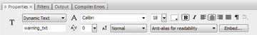 Congratulations! You've added the boxes that will shut the page down, in case the domain is wrong. Now, add a dynamic text box to the middle of the stage or anywhere you want it to be. This text box will inform the user who downloaded the file illegally that the file is protected by the script.. Give it an instance name of warning_txt