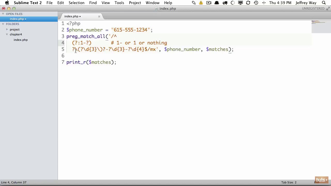 We'll return to PHP for this lesson so that we can implement our phone number example from the previous lesson, while adding some comments to make it much easier to read.