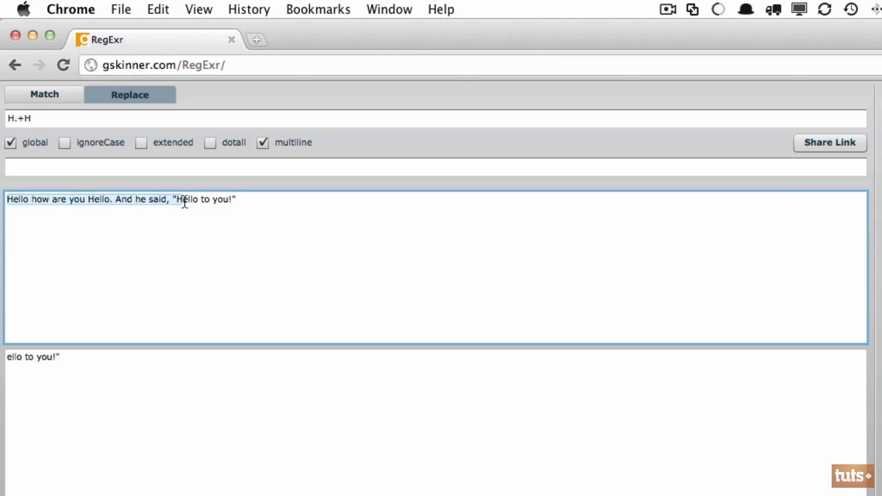 If you are ever writing a regular expression and you notice that it’s matching too much, be sure to return to it and ask yourself, “Is it being too greedy?” In this lesson we'll discover a symbol we can use to limit what we are matching.