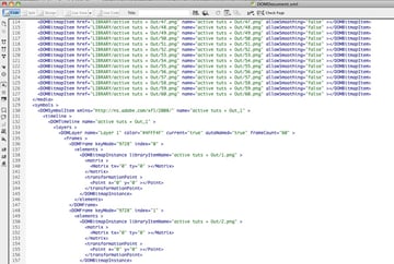 I am not going to get deep into this document but you can see that each element that makes up the animations from the folders is between the <media> </media> tags and how the movieclips with animation are constructed as well.