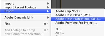 Contrary to what you may have heard Flash can’t create an XFL document. It can only read them. At the moment there are in fact only two applications in the Adobe lineup that can create these docs: After Effects CS4 and InDesign CS4. Here’s how an XFL document is created in After Effects: