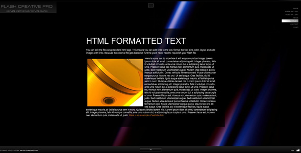 This template is the ultimate solution for creating, editing and launching your website in Adobe Flash even if you do not know anything about the actionscript language, and you do not have a copy of the software.