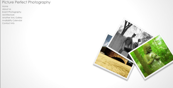 This is a fully XML driven template created to show off photography or design work. Everything from the menu system, to the title, to all the images is all completely XML driven. This website can be completely customized without even owning flash.