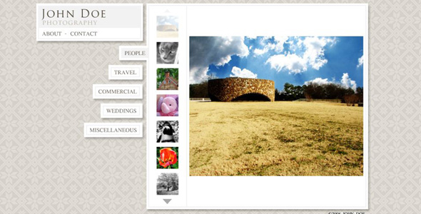 This template is ideal for photographers wanting to show multiple portfolios. Complete with a php contact form and an XML -driven portfolio which you can now navigate using your arrow keys, the template is a great upgrade from the first version! Still easy to configure and with a number of code optimizations (including more robust error handling and file download management).