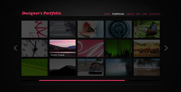A simple and elegant template to showcase your portfolio. Features support for images and flv files and includes source files, font and help documentation.