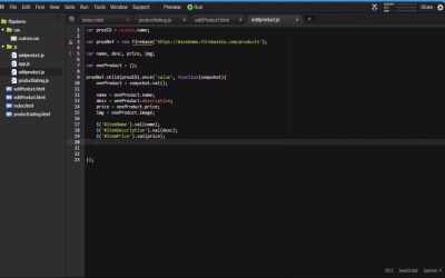 Hello everyone. This is Reggie Dawson. Welcome to the Use Firebase as Your Back-End course for Tuts Plus. In this video we will learn to update and delete our saved data. We're capable of saving our data and have configured Configure views to display this data. Now we just need a way to update our data in case we have a change and of course we need a way to delete our data if we no longer need it. When we set up our admin product listing we added buttons to edit and delete. These buttons have been set up with click handlers. As a result when we click on these buttons a function will run that takes the index as an argument. This index is our ID that was generated by the push method in Firebase and we will use this key to access our data. First let's go to our product listing that js file. Underneath the Firebase reference we're going to add a function. This is the function set up when our edit button and as you can see we have the argument of ID which is our passed in ID from our listing. Now we come to a problem with using plain JavaScript to create our project. I want to navigate to another page to display my data where I can edit. Unfortunately, I don't have a feature such as routing available to me where I can pass data to the other page. In order to do this I will have to use a little hack that some developers use. What I am going to do is use the window name property to pass the data across to another page. Now understand this is in no way secure but it will work for our purposes. First we set the property to our ID. And then we navigate to our page. Here we use the window location object to change our page. We also could have just assigned our URL to a location directly, but I prefer to use this version so it is clear what we are doing. After that, let's create editProduct.html by copying the addProduct.html file. After that, let's open editProduct.html. First we will change the title to edit product, then we can delete the nav bar as we will not need it. Then we can change the form id to editform. All of our input will remain the same except we will remove the placeholder text for all of them. Then we can change the button id to editbutton and the button text to read update a product. The final thing we need to do in this file is change the custom JavaScript reference from addproduct.js to editproduct.js. After that of course, we will create editproduct.js. The first thing we're going to do is create a variable to hold our product Id. Then we create a reference to our fire base app. Again we are mapping directly to our products node. Then we are going to create variables for our form fields and after that we create an object to hold our return data. At this point all we have is the ID of the record that we clicked on. We don't have any actual data. To get that we have to use a firebase method. First you'll notice that we have added the child mode to our reference which will pointed at the ID we pass from the product listing page. We can actually query firebase against any of the keys of our data but for our purposes the idea is the key that will get us individual records. You will also notice that as opposed to us using on we have use once. In our previous example on will load the data with the initial call to on and then again every time we have changes to the data. For our edit page we just need to grab the data one time because our intention is to change it Therefore use the Once listener which will load on the initial call and that's it. Any further changes to the data will not be recognized by Once. It's not really going to matter who going to navigate pages after you update. But I wanted to show you the Once Event listener. As with the previous example, we're listening for the value of it and passing a snapshot to our function. This snapshot consists of the return product. Then we set our Snapshot value to our object. Then we assign the return data to our variables. After that we use the jQuery val method to set the values of our text inputs. Most jQuery methods work as either getters and setters. Here we change its uses to set values by supplying the variables for name, description and price, to the appropriate inputs. For our image it's going to be a little different. This is the same thing we did previously with our preview image, using the attribute method to set the source of our image. Then we can add our change handler for our image, as we may be changing the image here. This is the same chain channel that we used in our addproduct.js file, except we are storing the reader result in the img variable. The last part is the editproduct function which should be familiar as it is similar to the syntax that we use to save the data in the first place. Again we are grabbing the contents of our inputs at the time we run the command which makes sense since this is the base to edit our data. Here again we are using our ID in conjunction with the update method to update the Firebase data. Inside we will send our variables like we did when we save the data. Instead of closing our statement like we did last time, we are going to use a callback function. This function will execute once the update method has run. Then we will add our click handler for our button set to execute the edit product function. Just above our edit product function, let's add our on complete function. The first thing we will do is check if there is an error. If there is an error, we will display an alert with the error code. Otherwise, we will navigate back to the product listing and see our changes reflected. After that, our edit page is done. Before we preview, we are also going to set up our function to delete our data as well. All we need to do is add a function to our productlisting.js file. Remember we create a click handler for the delete button on each product listing the executes this function. Again we pass in our id is the key to manipulate individual products. then we're going to use a JavaScript 