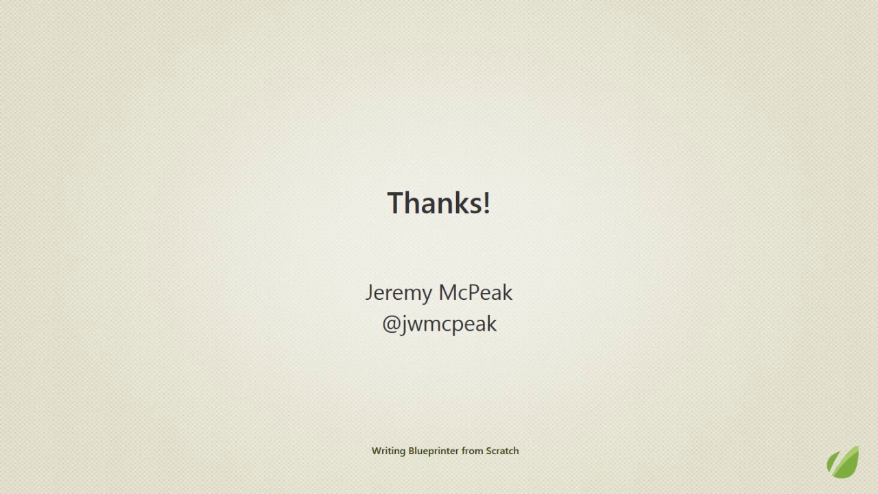 We've done it! We wrote a lite version of Blueprinter using the MVP pattern. Next, we should incorporate dependency injection and IoC containers to create our concrete objects for us.