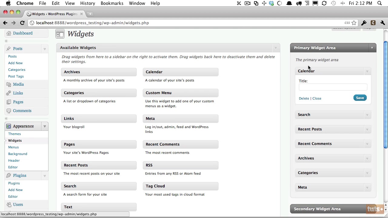 Now that we’ve successfully learned how to create shortcodes, we’ll move on to working with widgets, which are pieces of logic that can be dragged into designated areas of a theme.