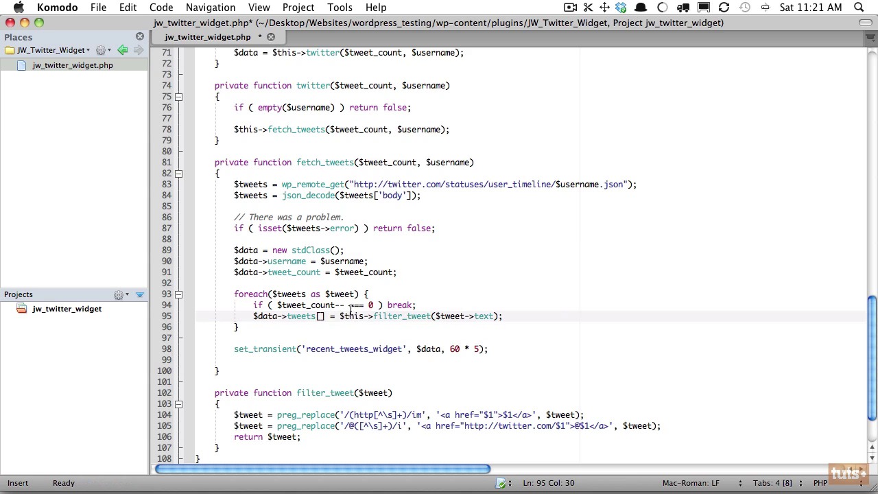 As we learned in the shortcodes chapter, we shouldn’t query the Twitter API with every pageload. We should instead be sure to cache the tweets every five minutes.